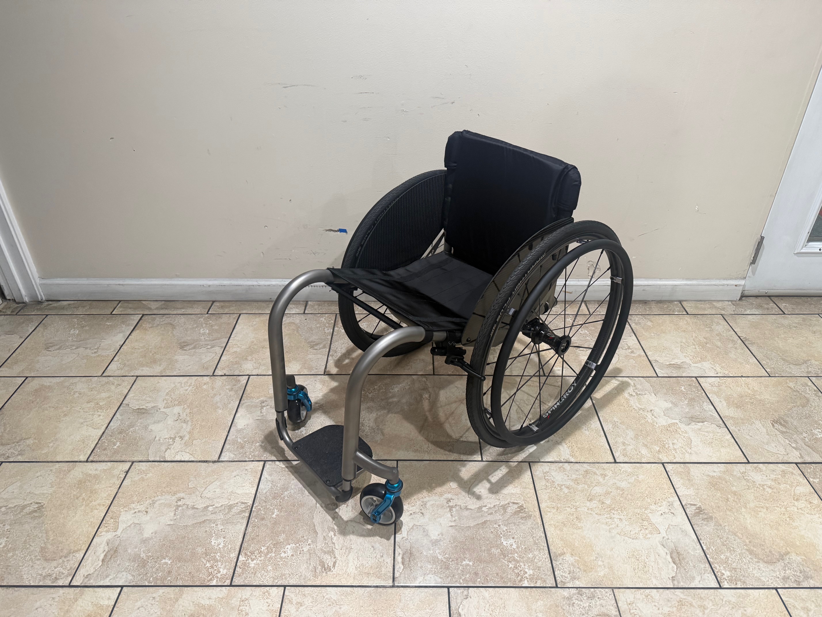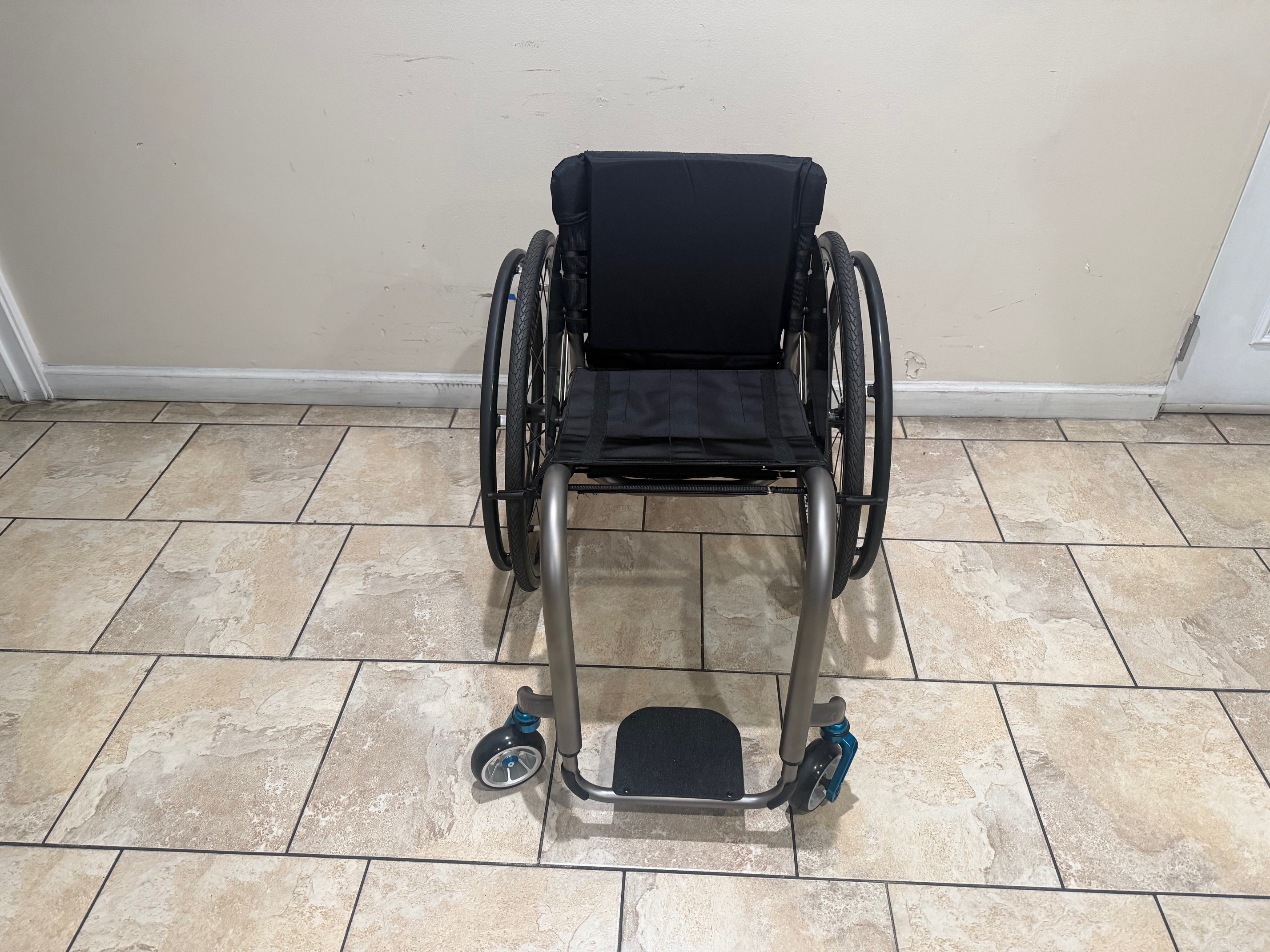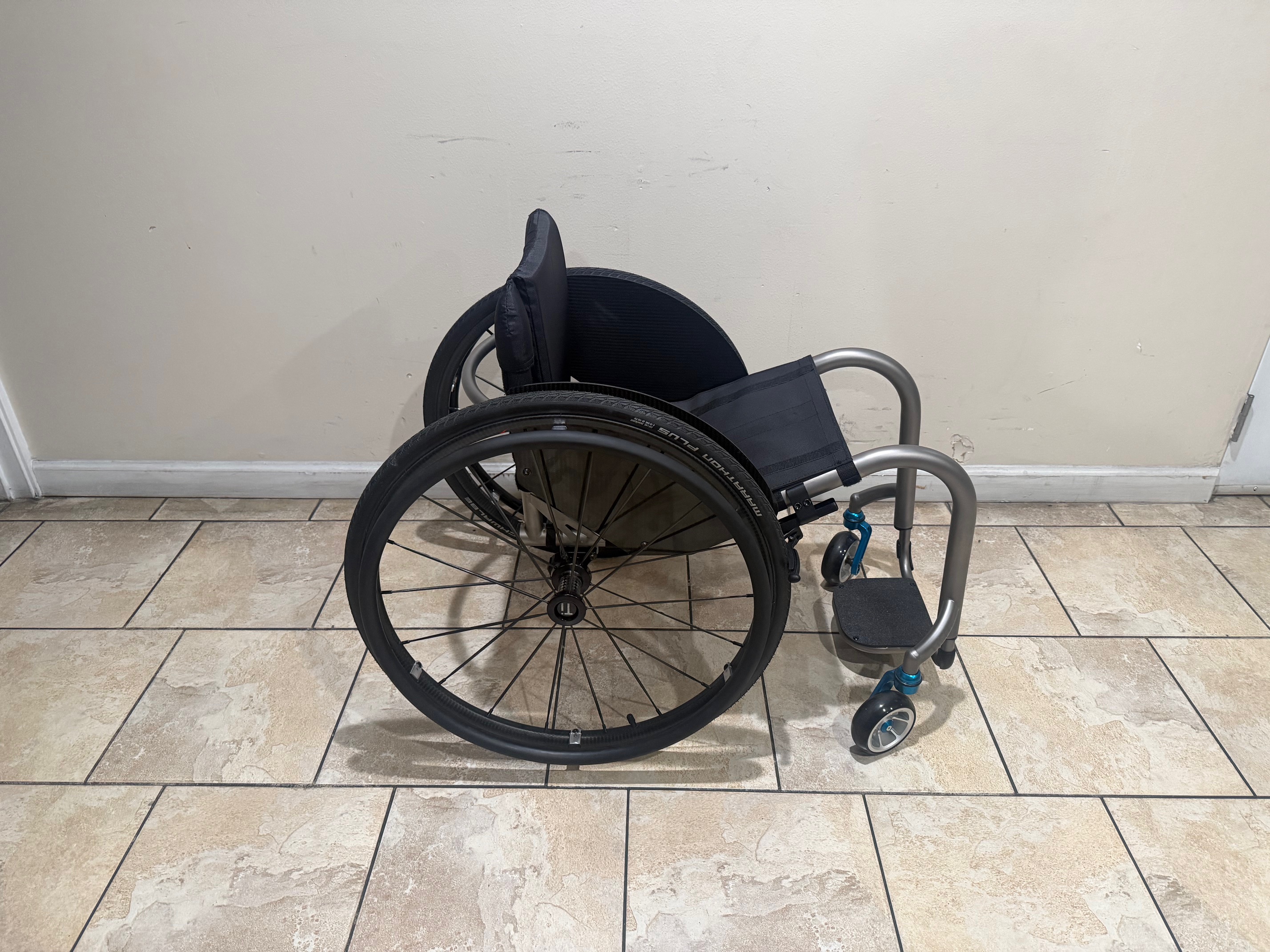 This TiLite ZR is in new condition, providing the performance and appearance of a brand-new wheelchair at a reduced cost.